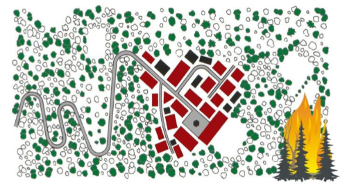 - L’ incendio è causato dalle attività svolte negli insediamenti abitativi o in loro prossimità. In questo caso l’incendio si propaga dalle case al bosco circostante.